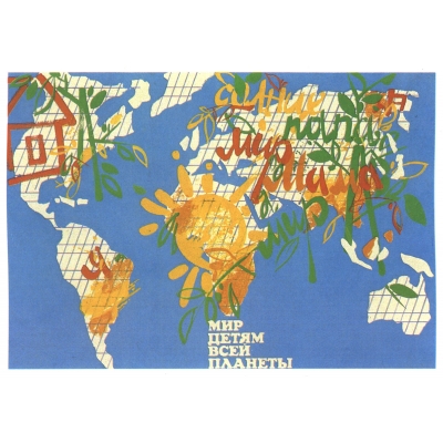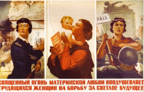 The postcard above is advertising celebrations to the International Women´s Day on the 8th of March which is acknowledging women of the working class from various backgrounds. Until today this day marks demonstrations and protests of the socialist women´s movement in 1917 as an event that represents women´s participation in the Russian Revolution. The new image of women is focusing on her identity as part of the proletariat although the narrative of women in their role as mothers of the revolution is still dominant as well. They were increasingly represented in different parts of society like educational and organizational institutions of the communist regimes and movements in place. One can argue that the society that is tried to be achieved is still a patriarchal one where women are not completely free from certain roles that they are described to because of their gender but that there is still change in how women are being given importance and are seen as part of the collective union of the working class. The aesthetics of the postcard are portraying the three women of diverse backgrounds as confident representatives of the international female proletariat. Them being positioned on the same level shows the attempt that racial or cultural divisions have no space in their unity. Their positive and happy appearance while looking into their socialist future is also an example how revolutionary individuals are characterized in socialist realist imagination. Being side by side representing their sisterhood working and fighting for the same goal is also an important image to be recognized. Although the stereotypical representation of “the asian” as well as “the african” women through accessories and the positioning of the white woman at the front does show that there is still a certain bias influencing that representation.